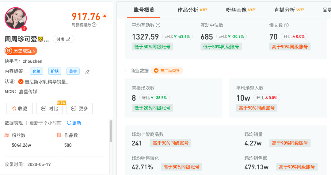 据第三方数据暴露,“周周珍可儿625”近30天直播8场,场均销售额479.13w。值得一提的是,其实控公司被处理后,该账号仍日常进行多场直播,最近直播本事为12月7日至8日。